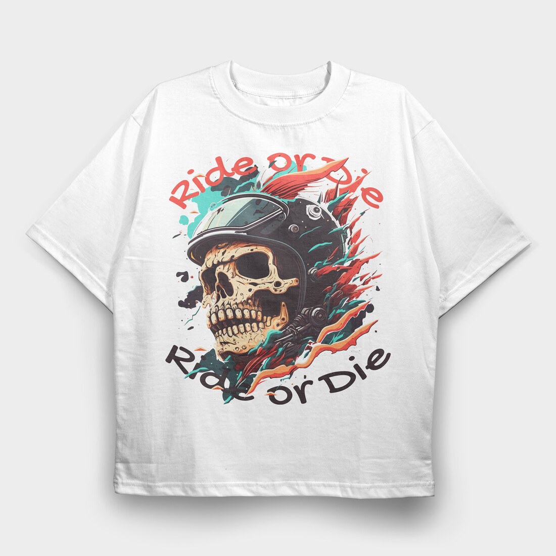 Motorcycle Helmet Skull Ride or Die, Tricou Oversize Barbati (Unisex)