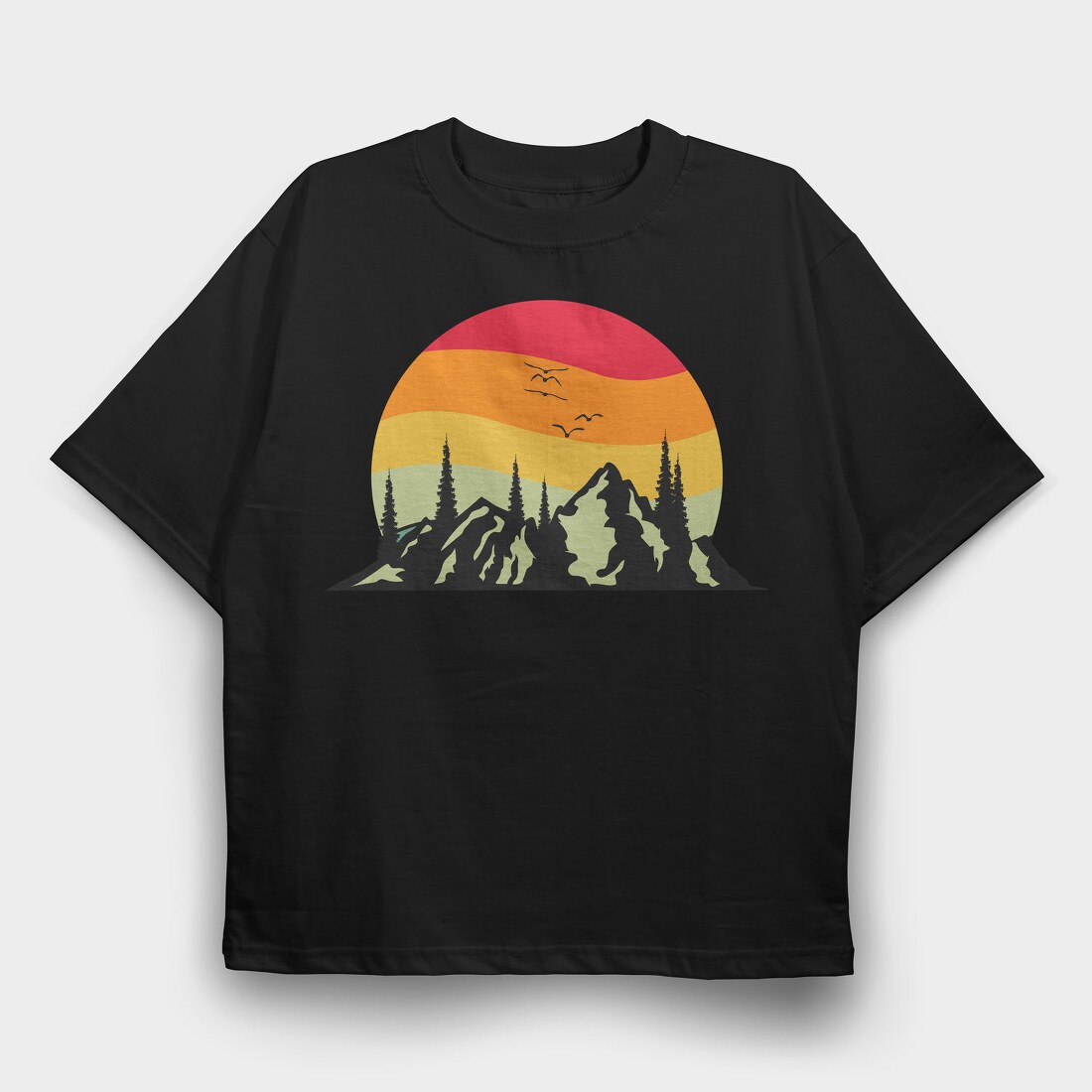 Mountain Sunset, Tricou Oversize Barbati (Unisex)