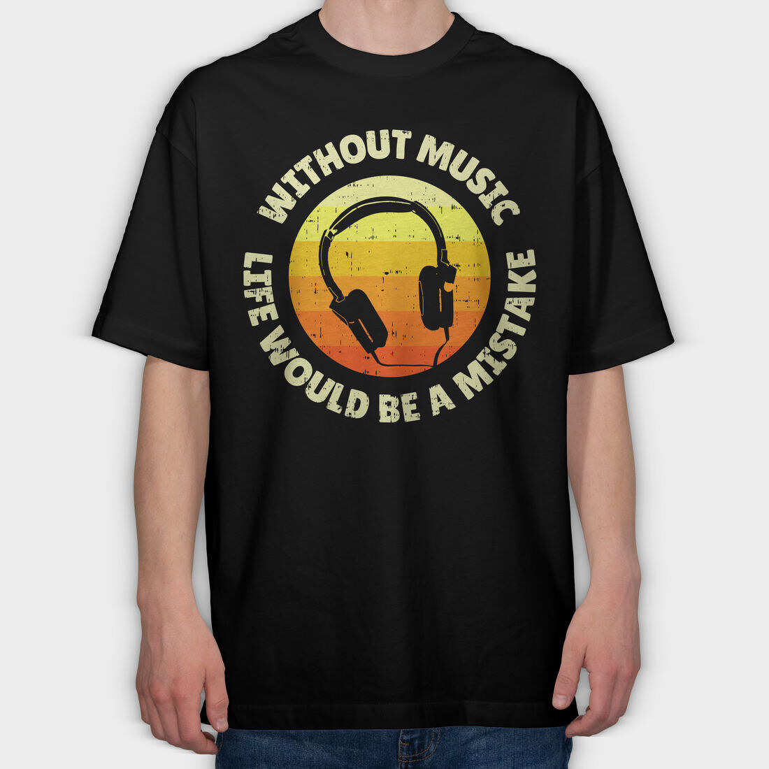 Music Life Headphones, Tricou Oversize Barbati (Unisex)