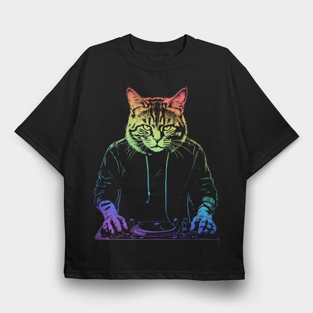 Neon Cat Dj, Tricou Oversize Barbati (Unisex)
