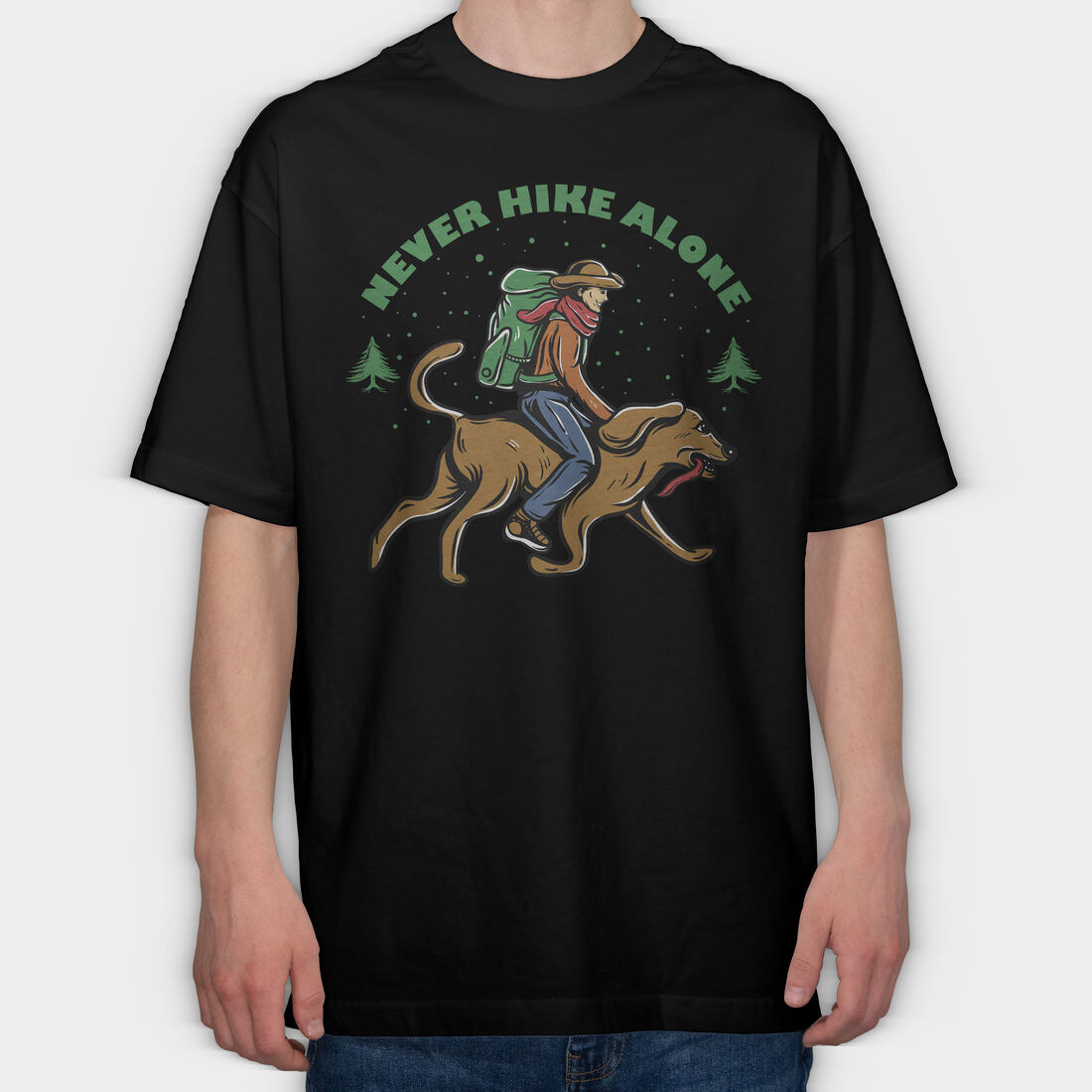 Never Hike Alone, Tricou Oversize Barbati (Unisex)