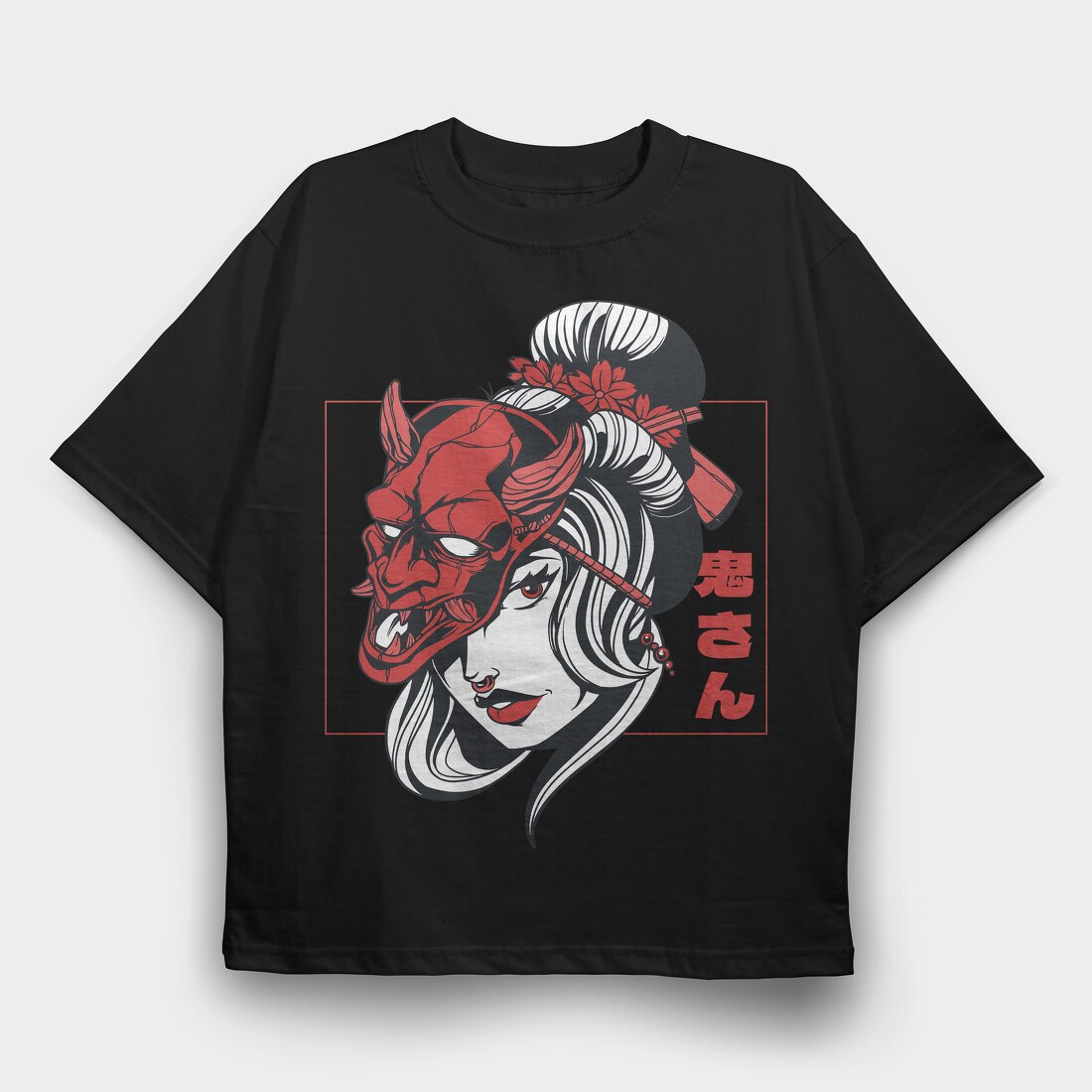 Oni Mask Girl Japanese, Tricou Oversize Barbati (Unisex)