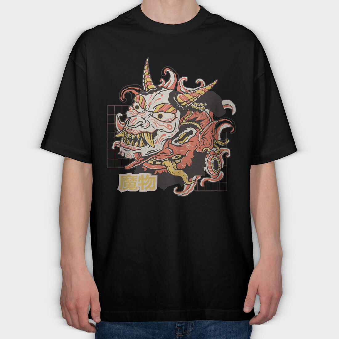 Oni Monster Asian Mask, Tricou Oversize Barbati (Unisex)
