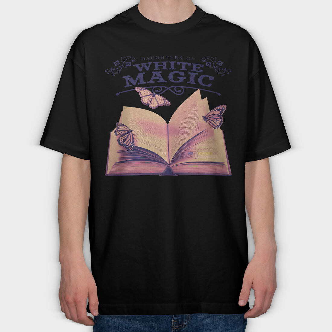 Open Book And Butterflies White Magic Tote, Tricou Oversize Barbati (Unisex)