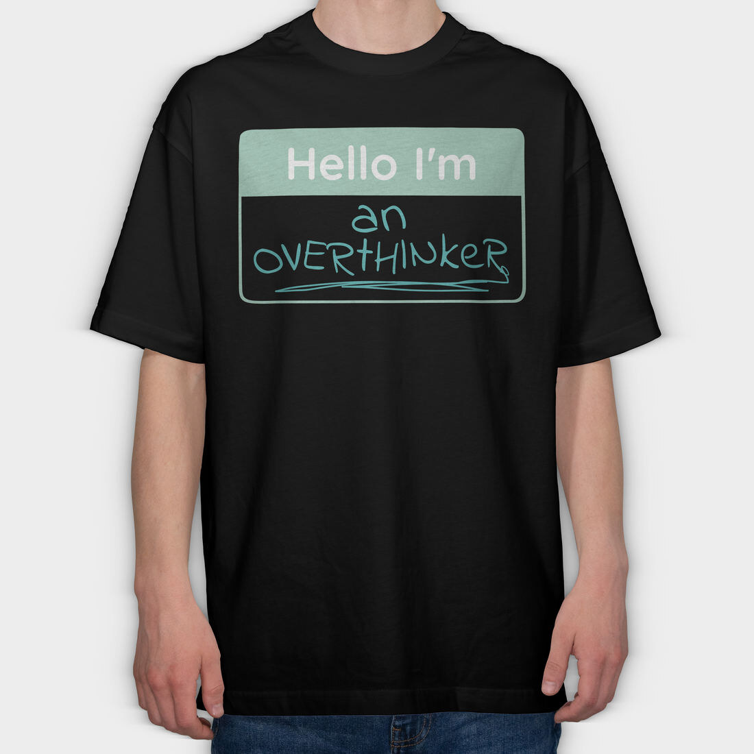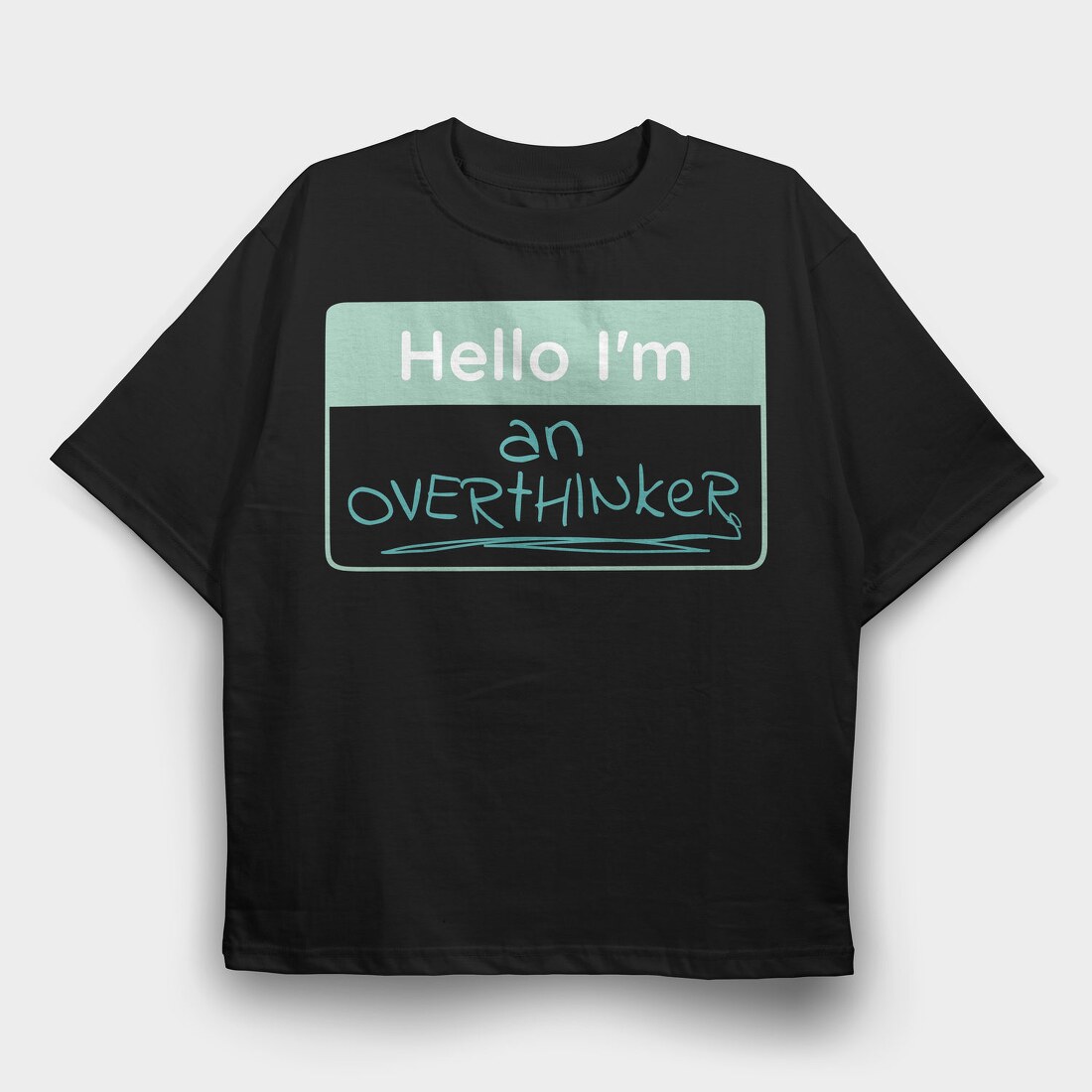 Overthinker Name Tag Hello I M An Overthinker, Tricou Oversize Barbati (Unisex)