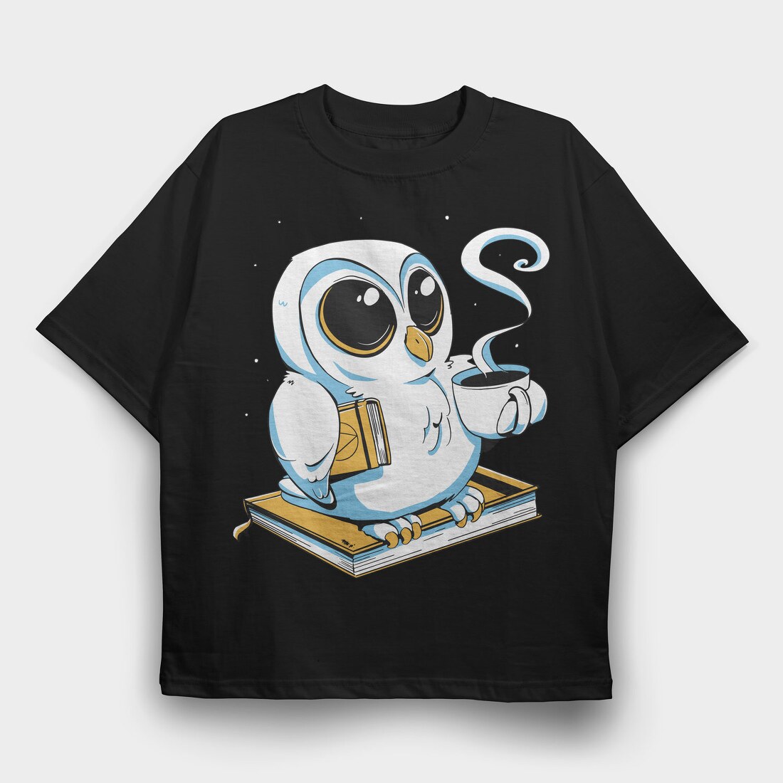 Owl With Books And Coffee Cute, Tricou Oversize Barbati (Unisex)