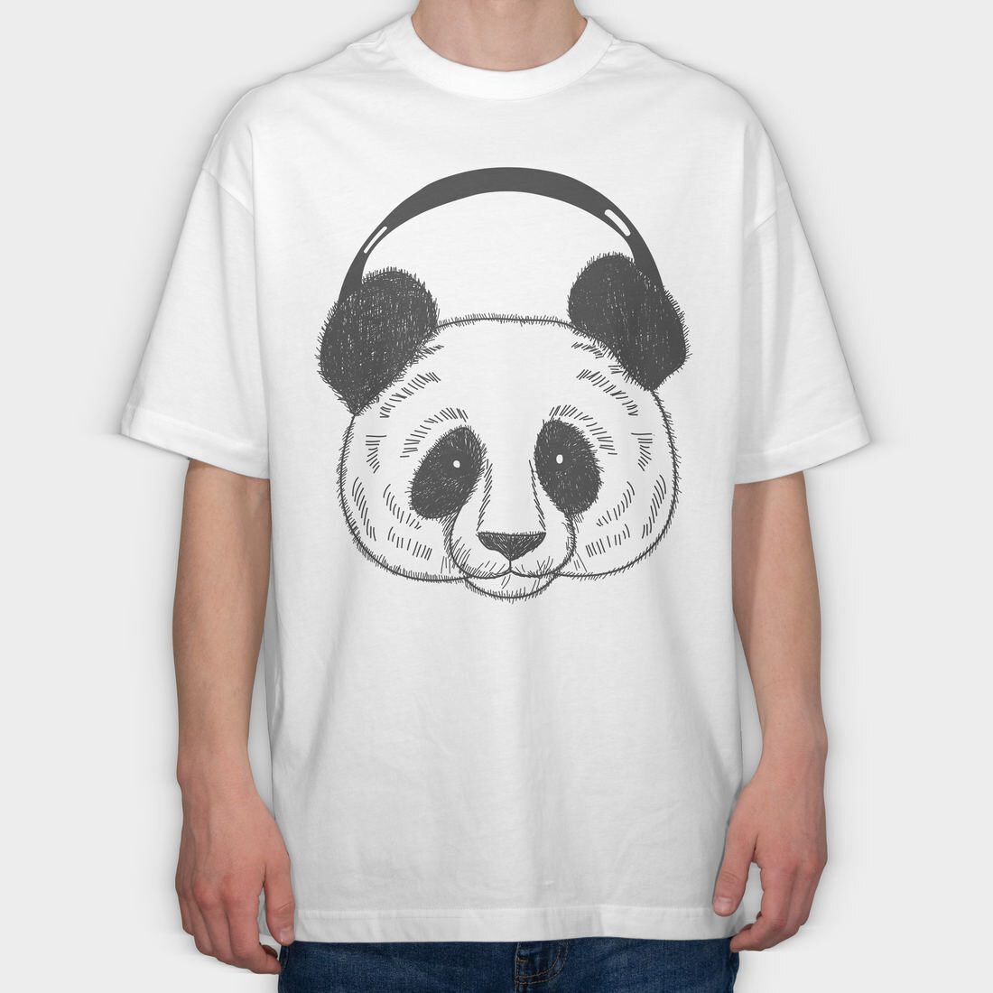 Panda Headphones, Tricou Oversize Barbati (Unisex)