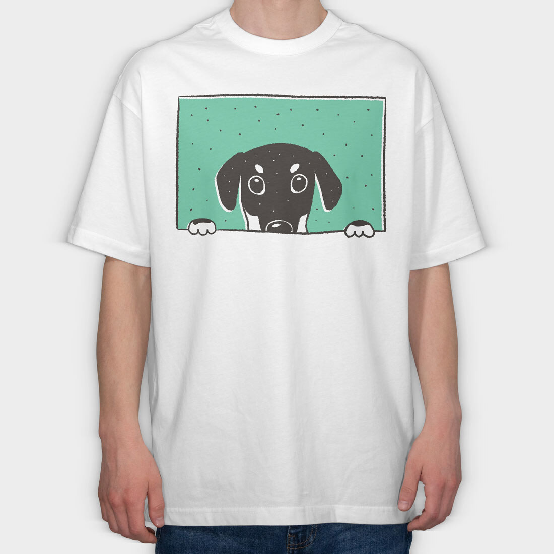 Peeking Dog, Tricou Oversize Barbati (Unisex)