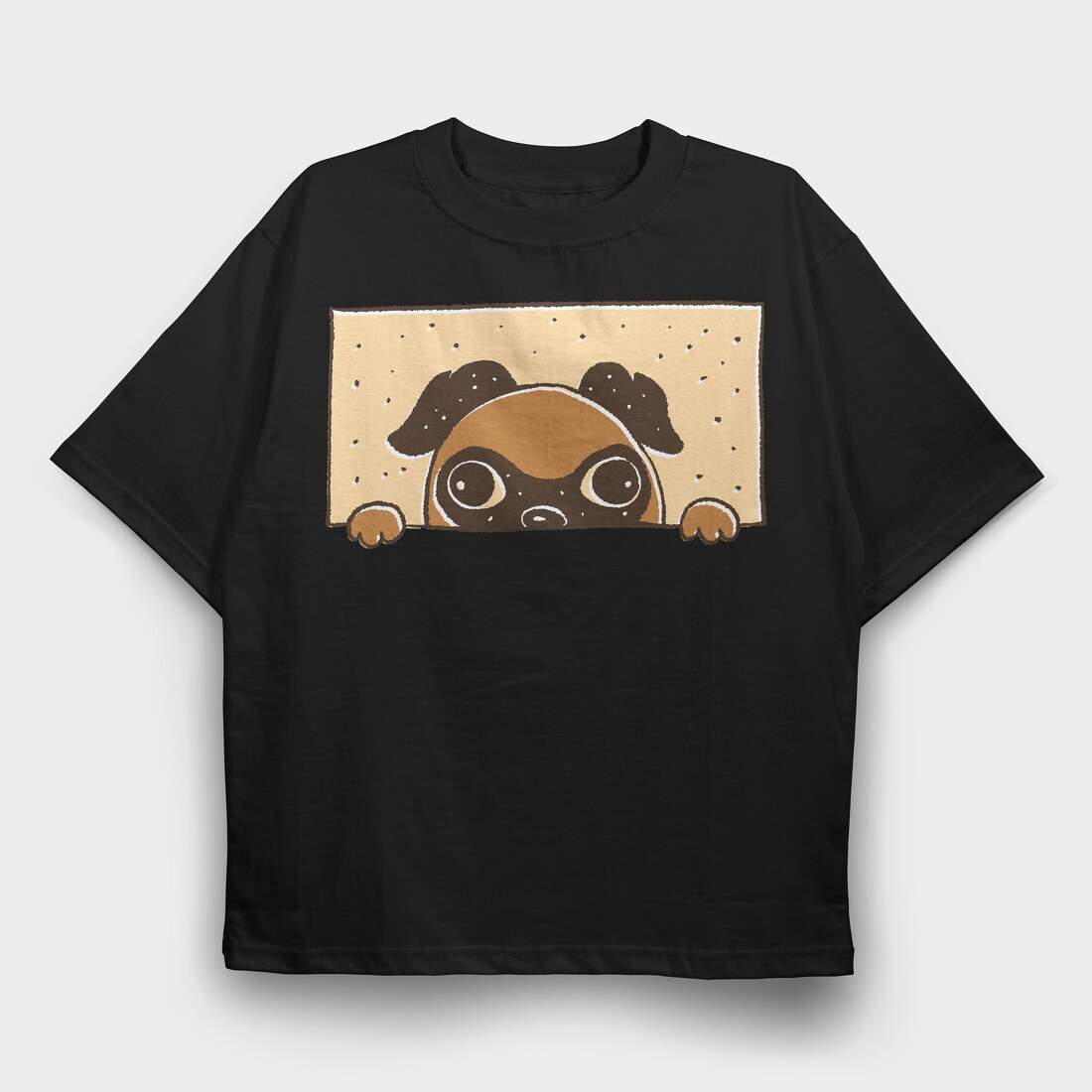 Peeking English Pug, Tricou Oversize Barbati (Unisex)