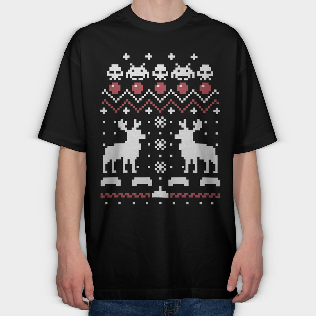 Pixel Smiley, Tricou Oversize Barbati (Unisex)