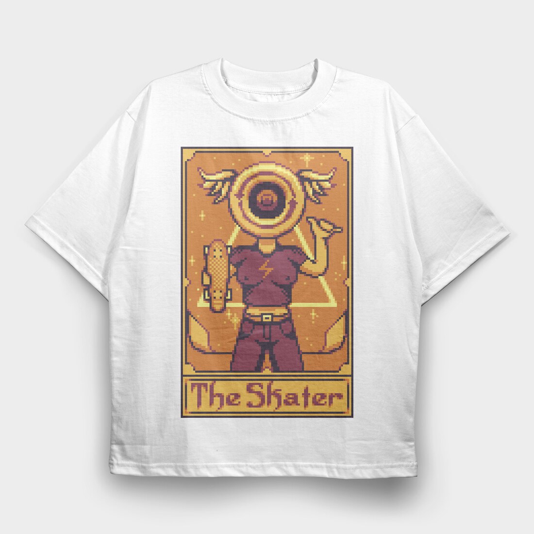 Pixelart Tarot Card the Skater, Tricou Oversize Barbati (Unisex)