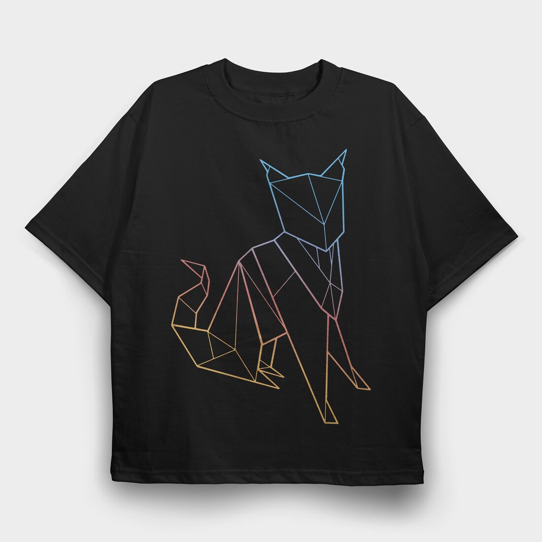 Polygonal Cat Rainbow Gradient, Tricou Oversize Barbati (Unisex)