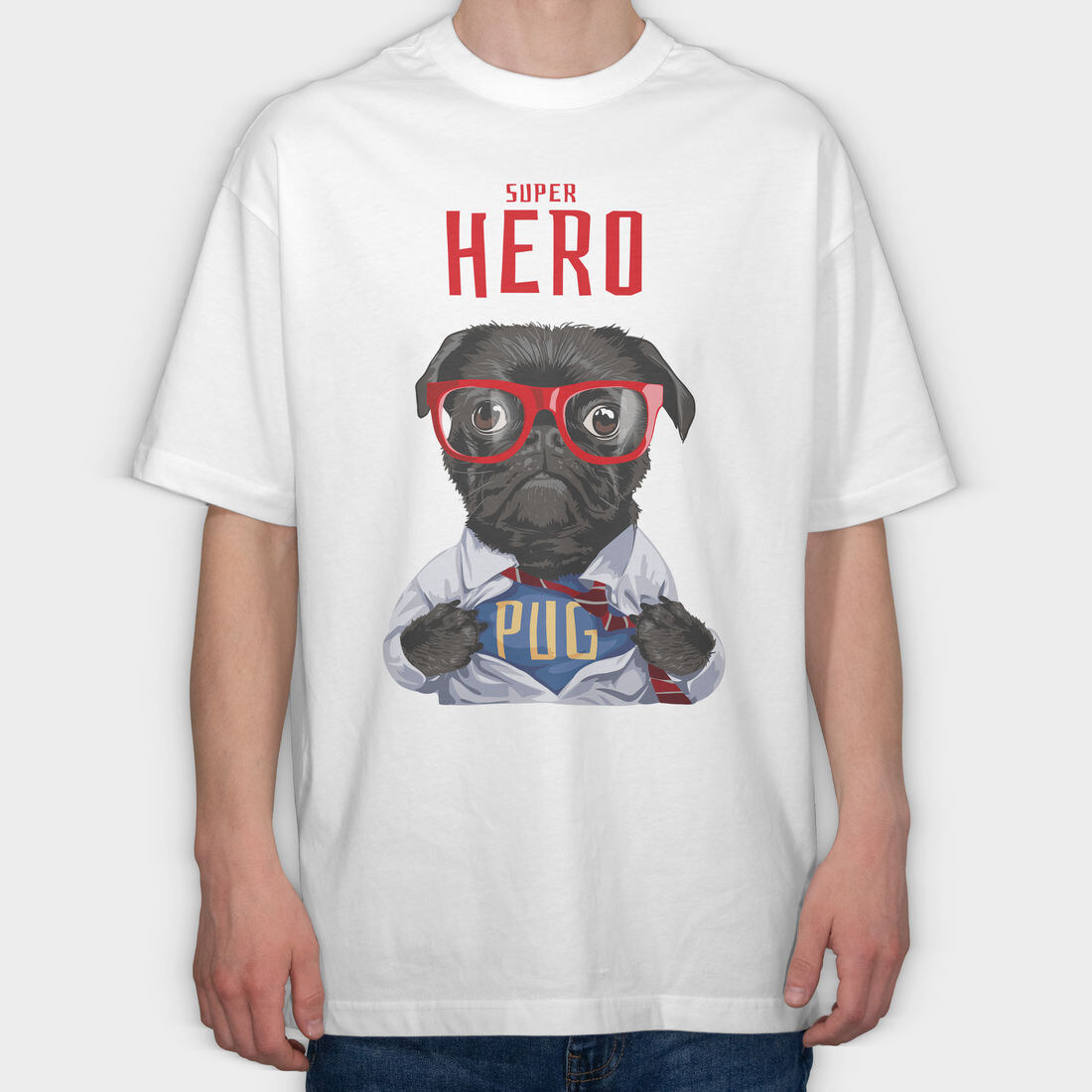 Pug Super Hero, Tricou Oversize Barbati (Unisex)