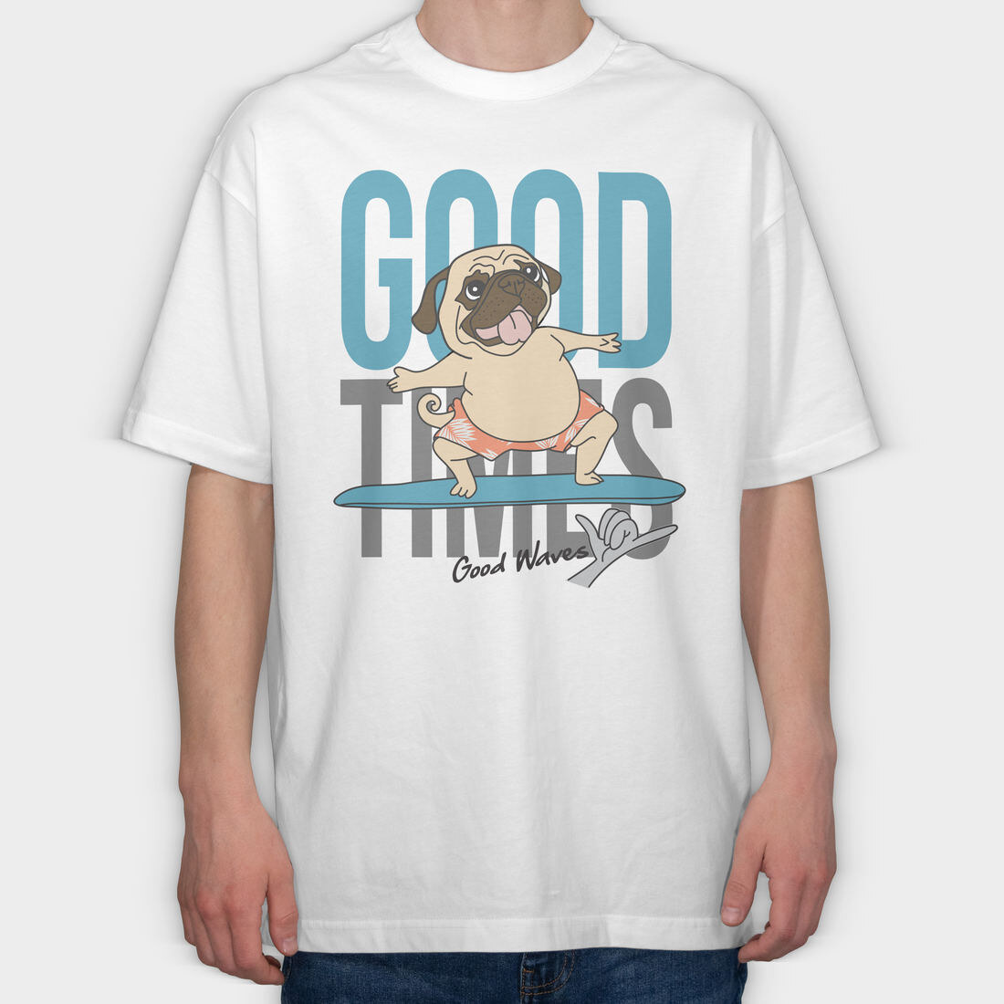Pug Surfing Good Waves, Tricou Oversize Barbati (Unisex)