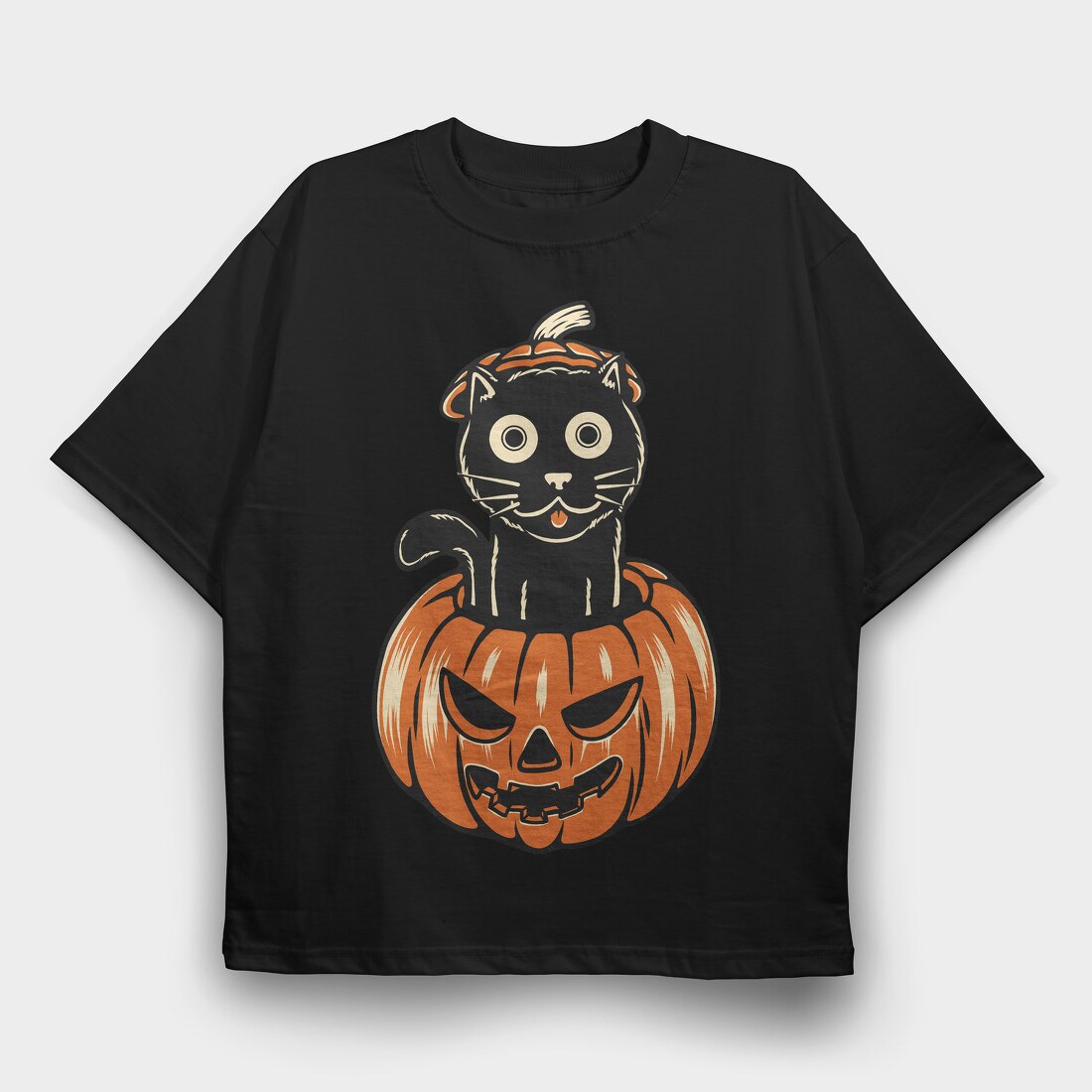 Pumpkin Kitty, Tricou Oversize Barbati (Unisex)