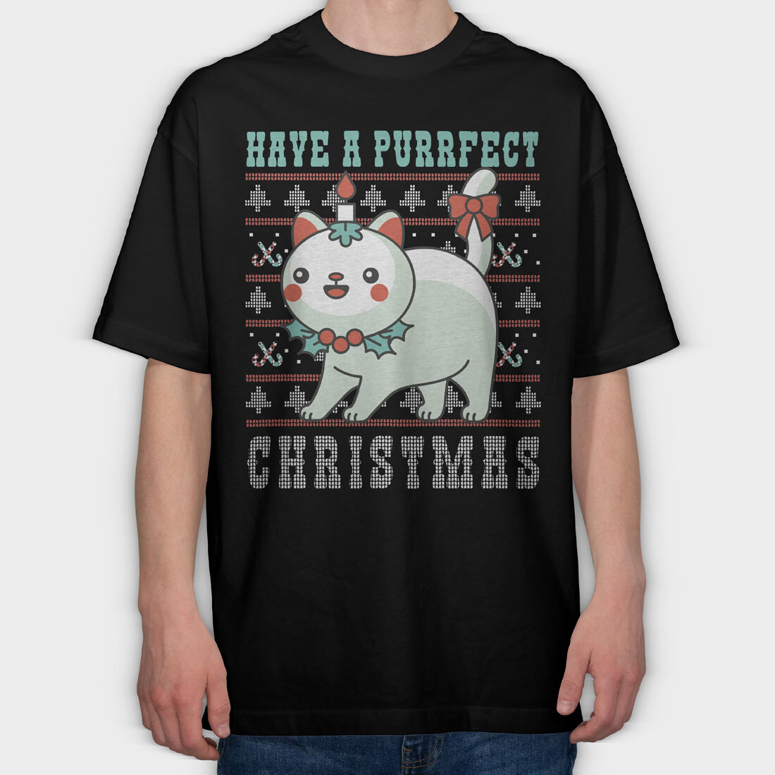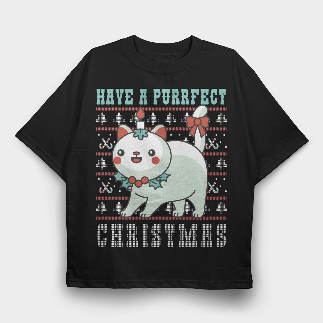 Purrfect Christmas Ugly Sweater, Tricou Oversize Barbati (Unisex)