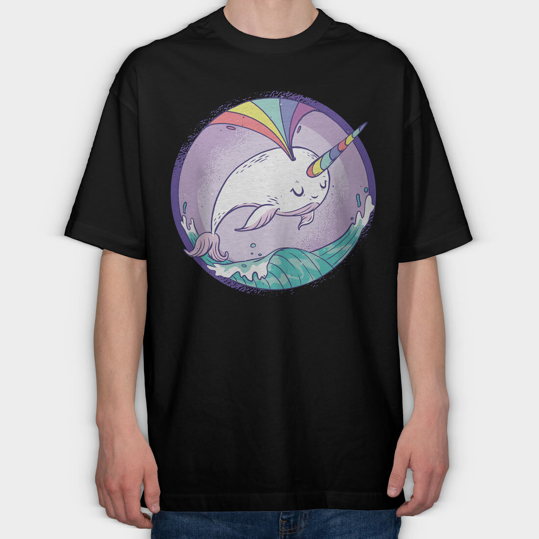 Rainbow Narwhale Whale, Tricou Oversize Barbati (Unisex)