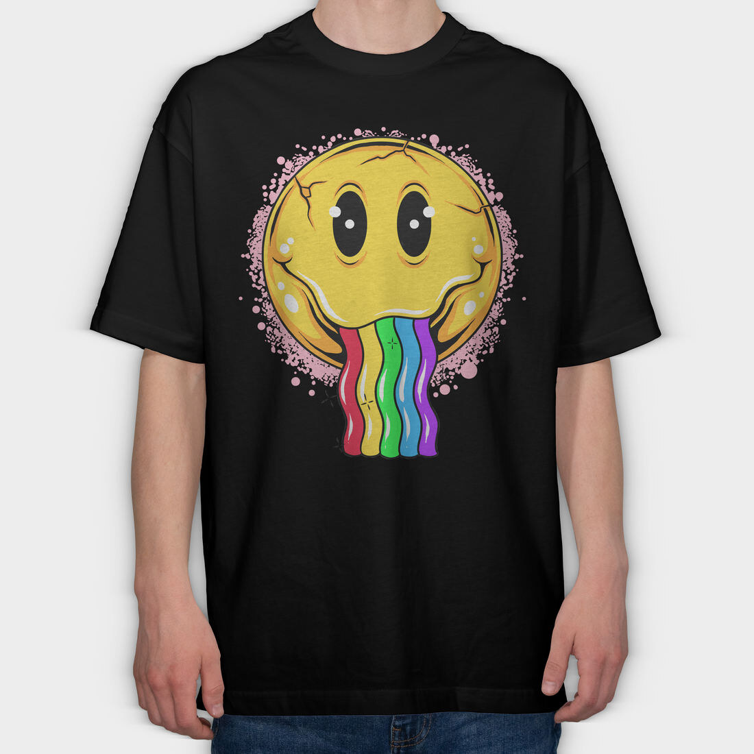 Rainbow Smiley Vibes, Tricou Oversize Barbati (Unisex)