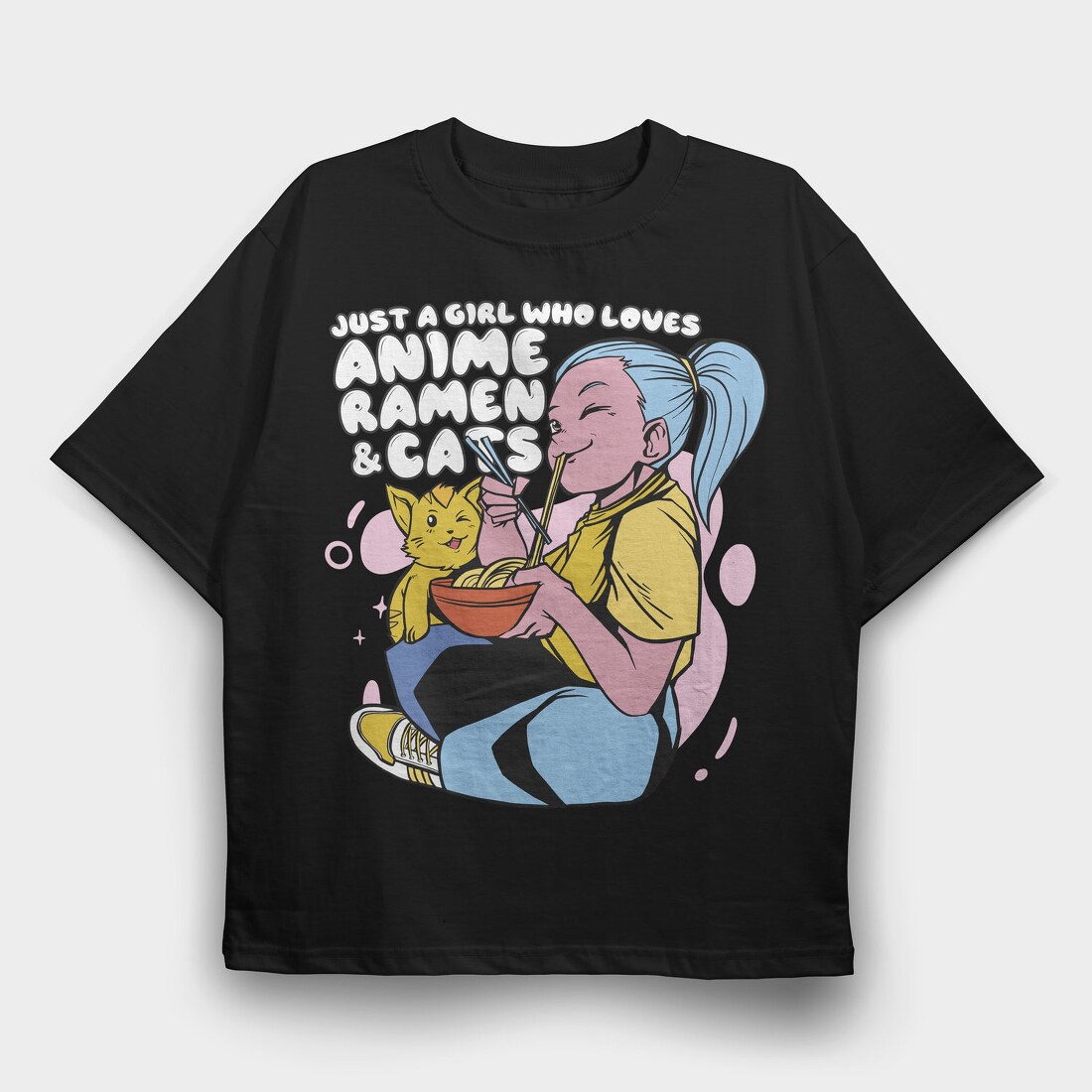 Ramen Cat Love, Tricou Oversize Barbati (Unisex)