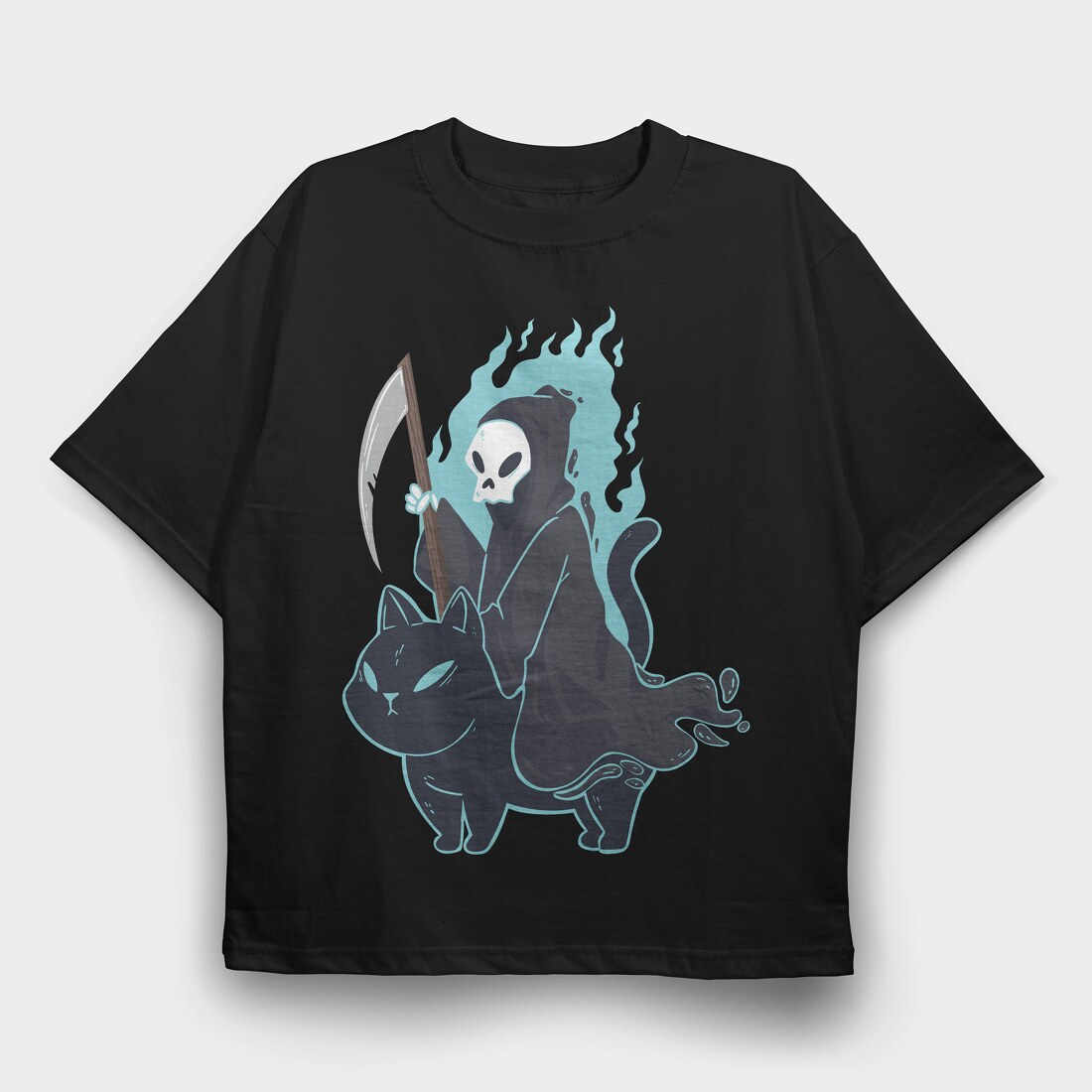 Reaper And Cat, Tricou Oversize Barbati (Unisex)