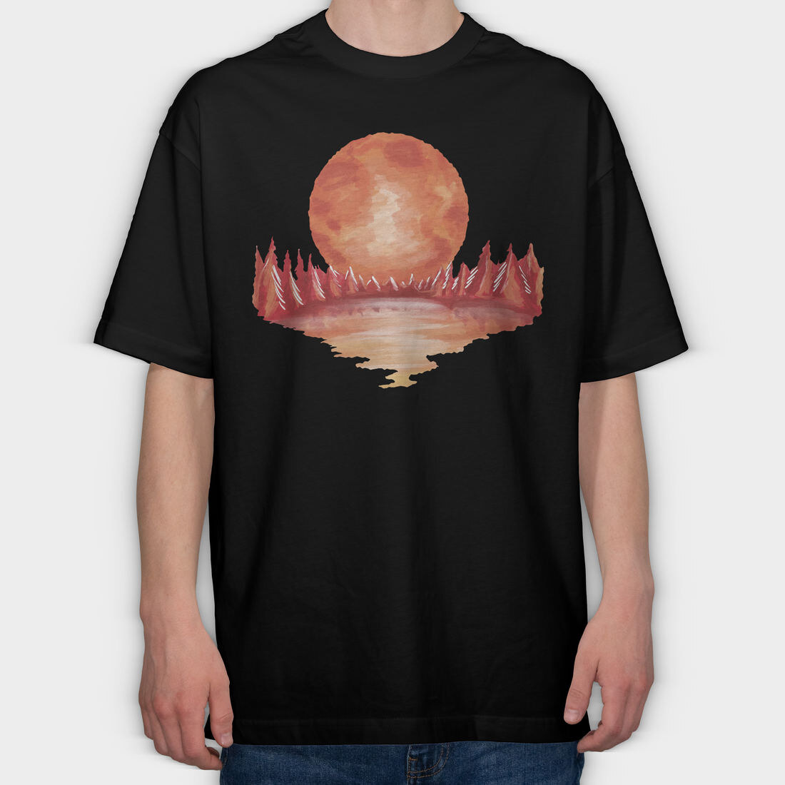 Red Landscape Full Moon Lake, Tricou Oversize Barbati (Unisex)