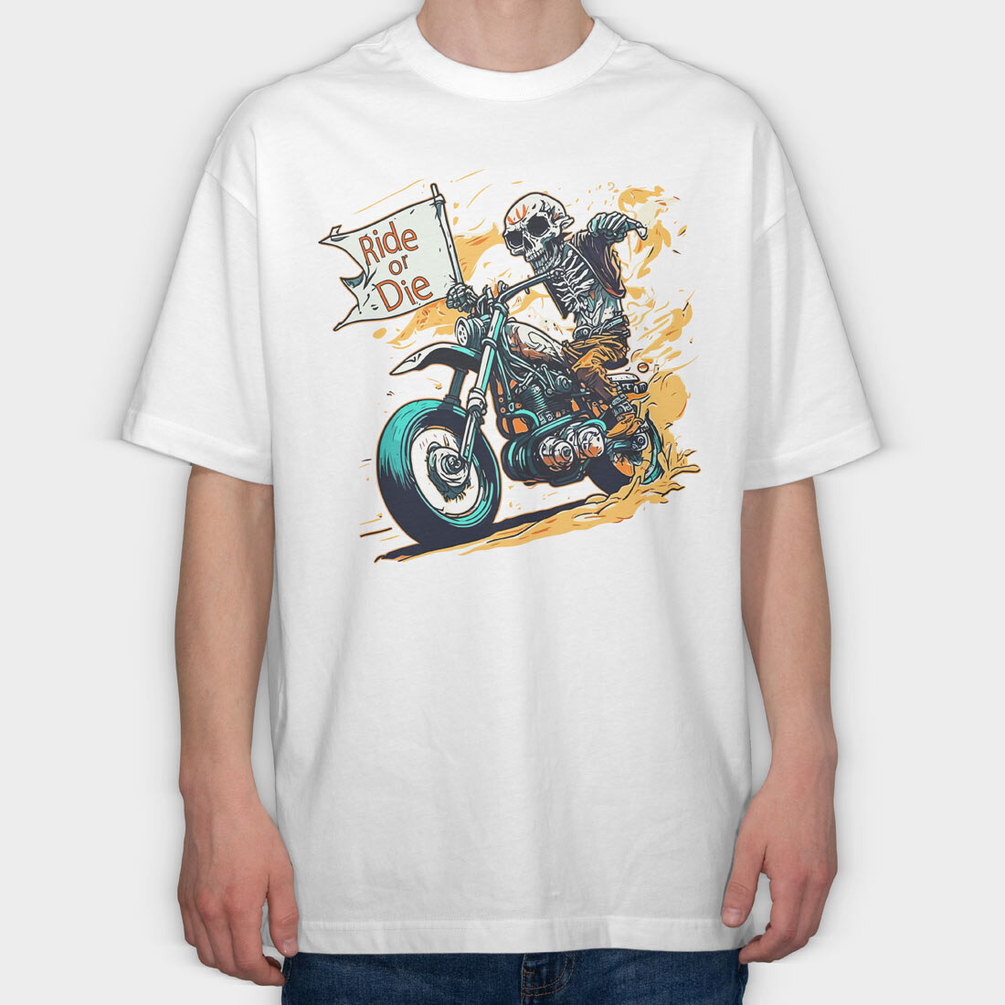 Ride or Die Skeleton Motorcycle Flag Art, Tricou Oversize Barbati (Unisex)