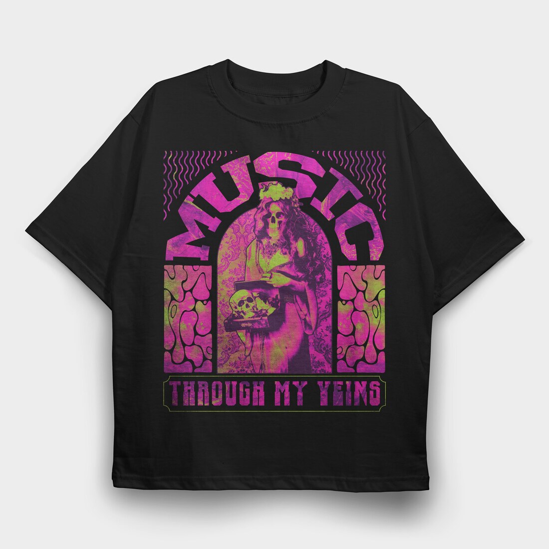 Rock Poster Music Through, Tricou Oversize Barbati (Unisex)
