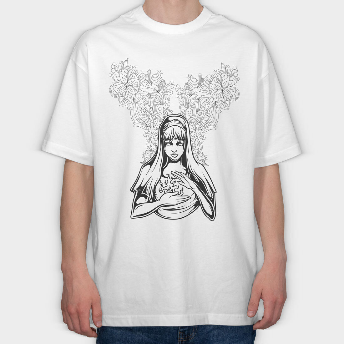 Sacred Heart Of Mary, Tricou Oversize Barbati (Unisex)