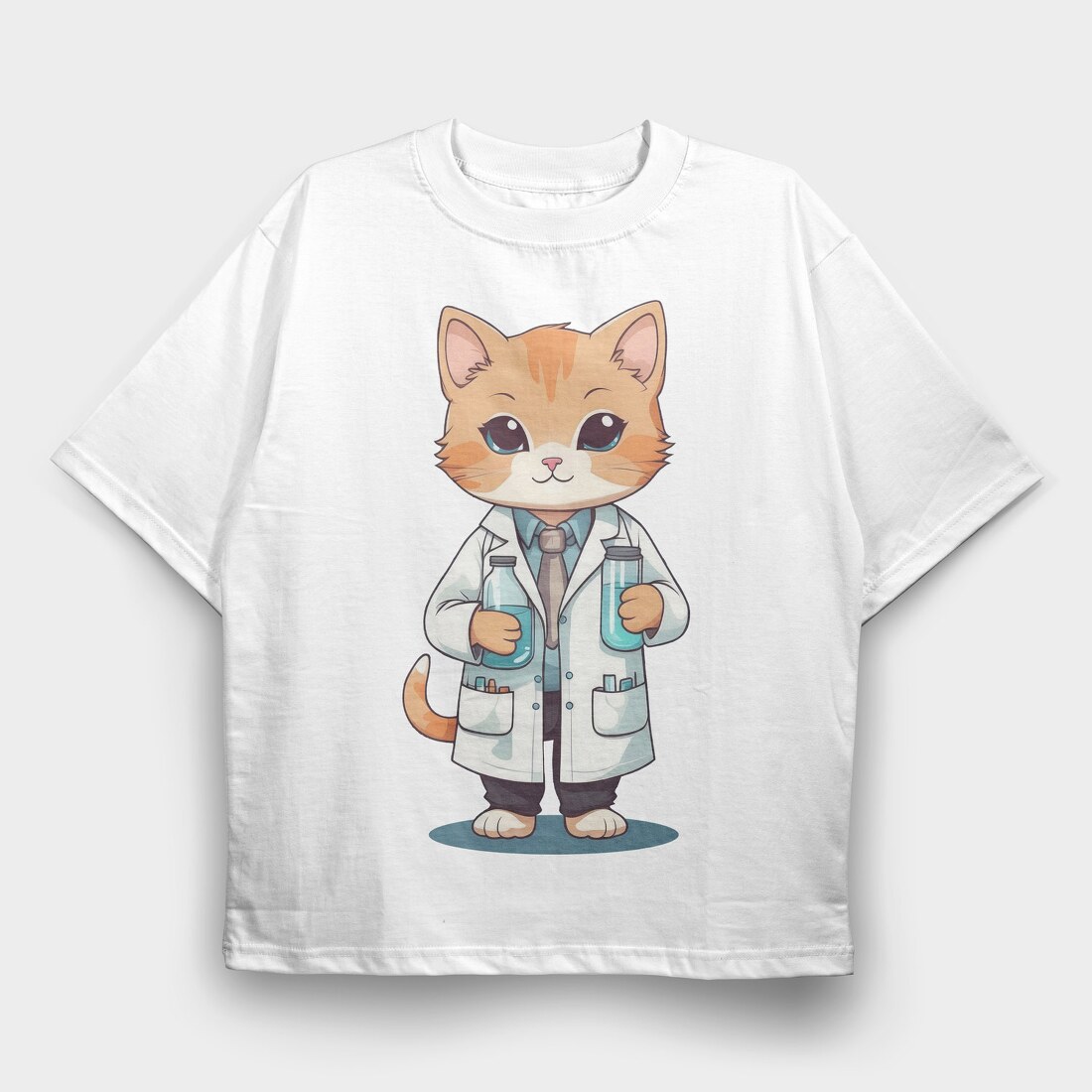 Scientist Cat, Tricou Oversize Barbati (Unisex)