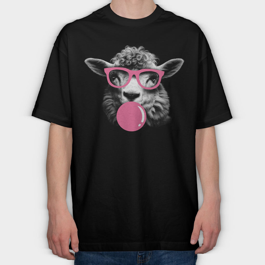 Sheep Monochrome Bubblegum, Tricou Oversize Barbati (Unisex)