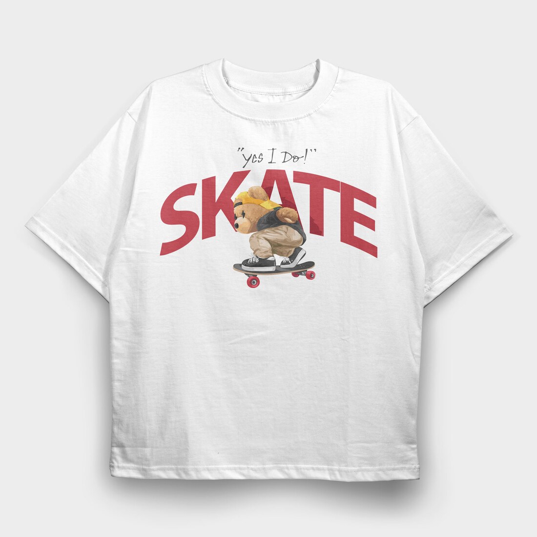Skateboarding Teddy 2, Tricou Oversize Barbati (Unisex)