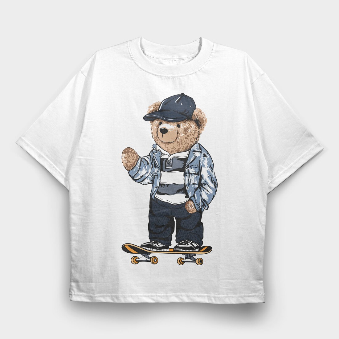 Skateboarding Teddy Bear, Tricou Oversize Barbati (Unisex)