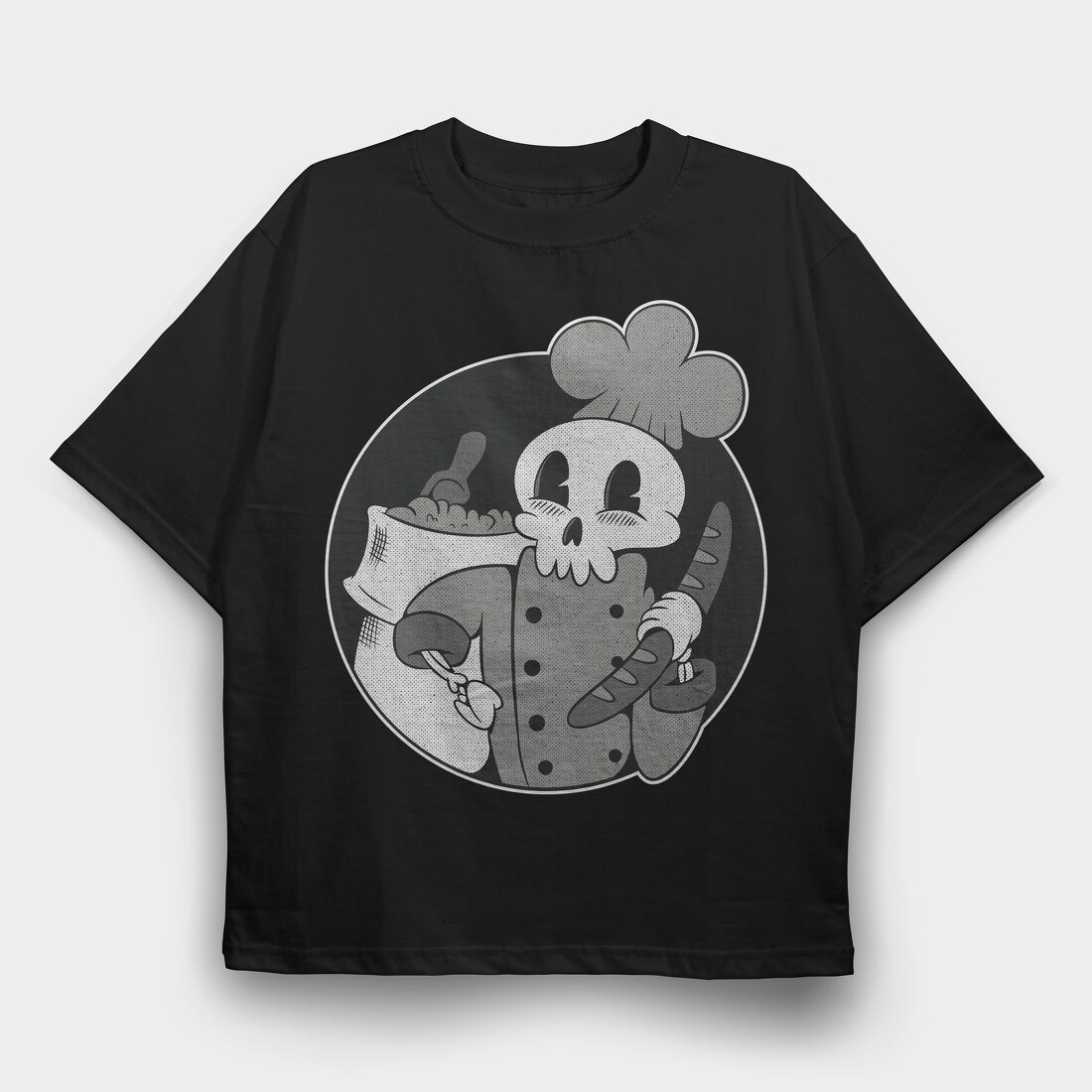 Skeleton Baker Retro Chef Cartoon, Tricou Oversize Barbati (Unisex)