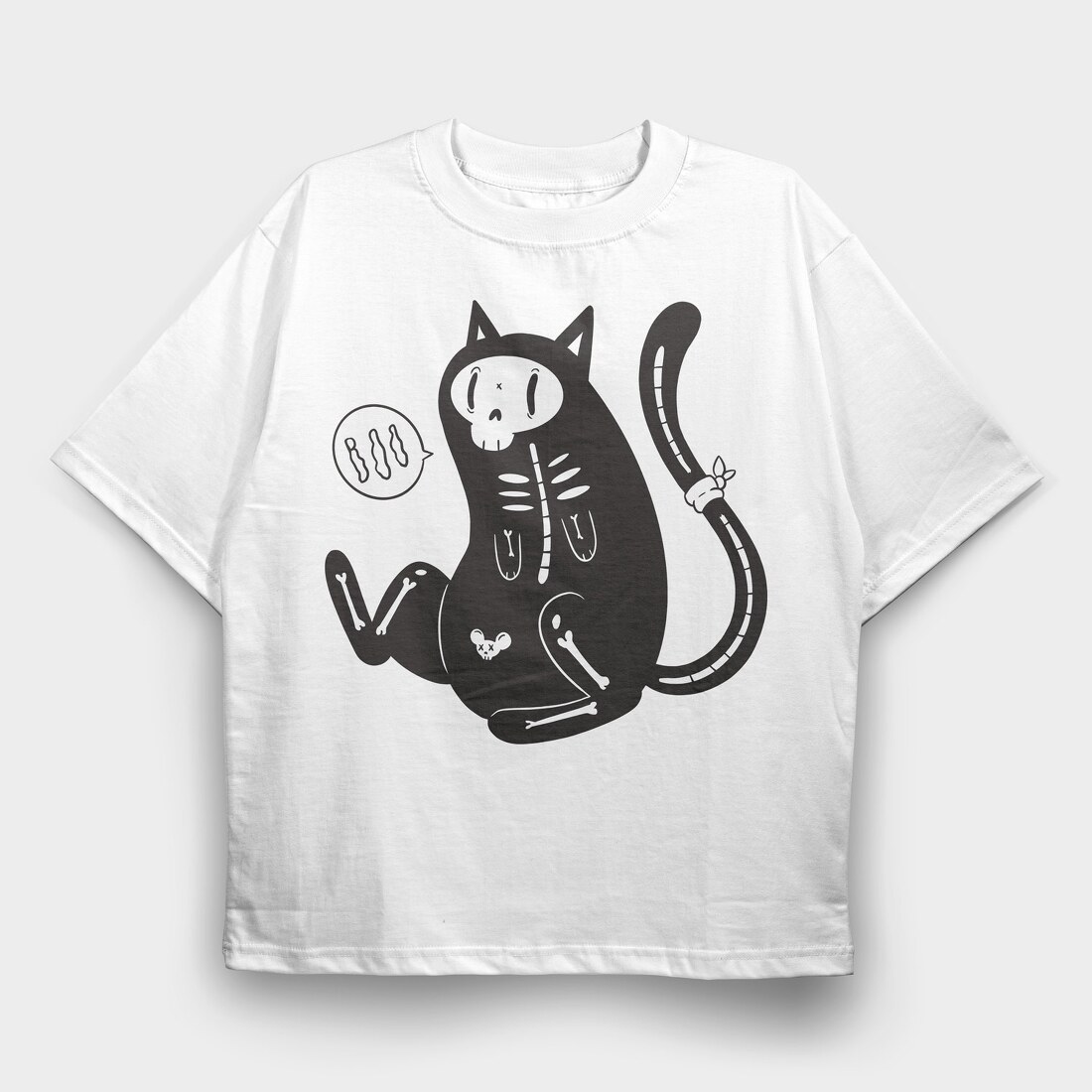 Skeleton Cat, Tricou Oversize Barbati (Unisex)
