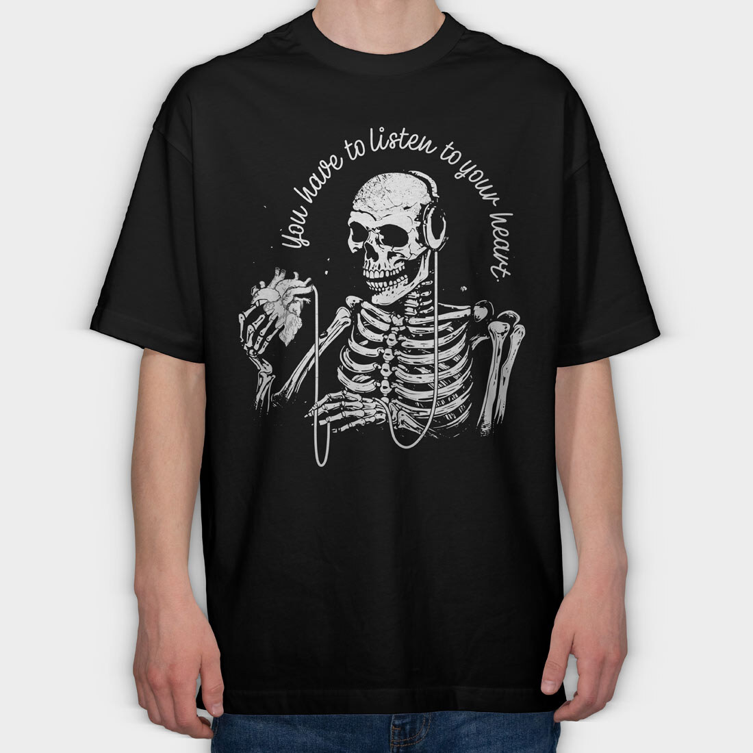 Skeleton Listen to Your Hearth, Tricou Oversize Barbati (Unisex)