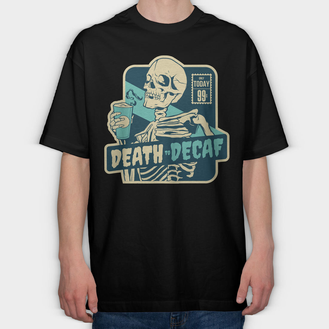 Skeleton With Caffeine Drink Death Coffee, Tricou Oversize Barbati (Unisex)