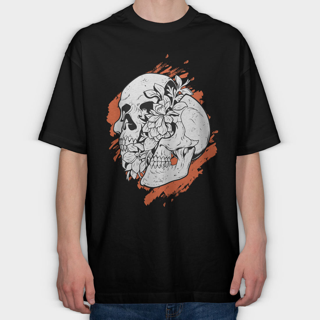 Skull Bloom, Tricou Oversize Barbati (Unisex)