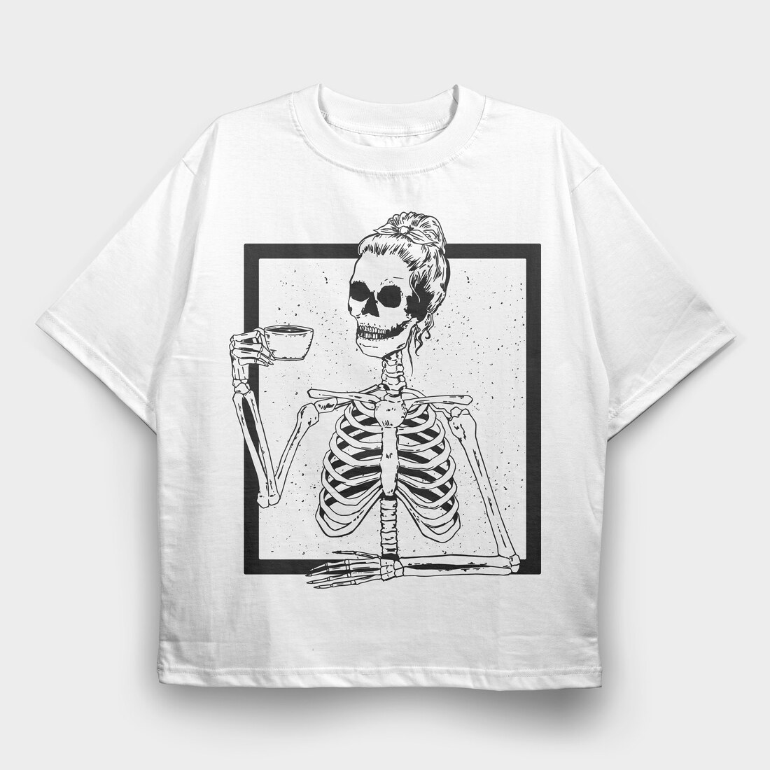 Skull Messy Bun Coffee, Tricou Oversize Barbati (Unisex)