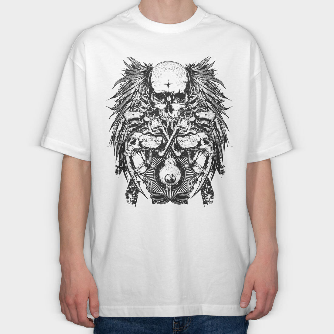 Skull Wings Guns, Tricou Oversize Barbati (Unisex)