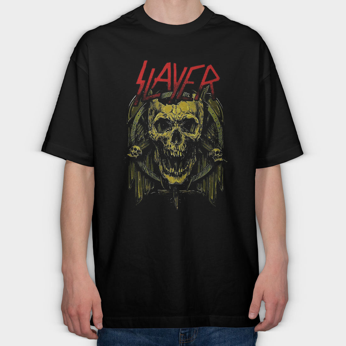 Slayer Skull Flames Crosses 3, Tricou Oversize Barbati (Unisex)