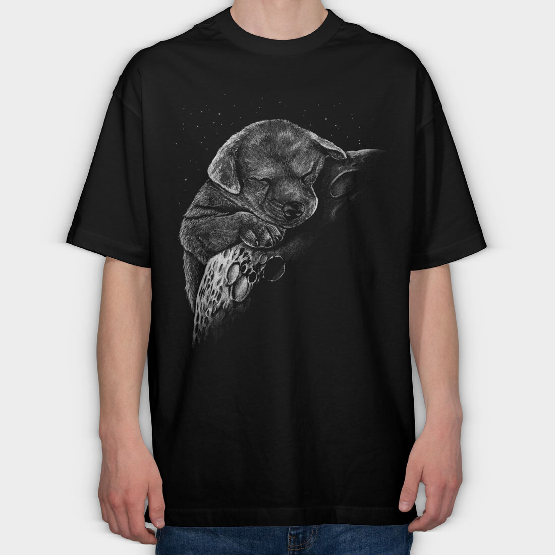 Sleeping Dog Monochrome, Tricou Oversize Barbati (Unisex)