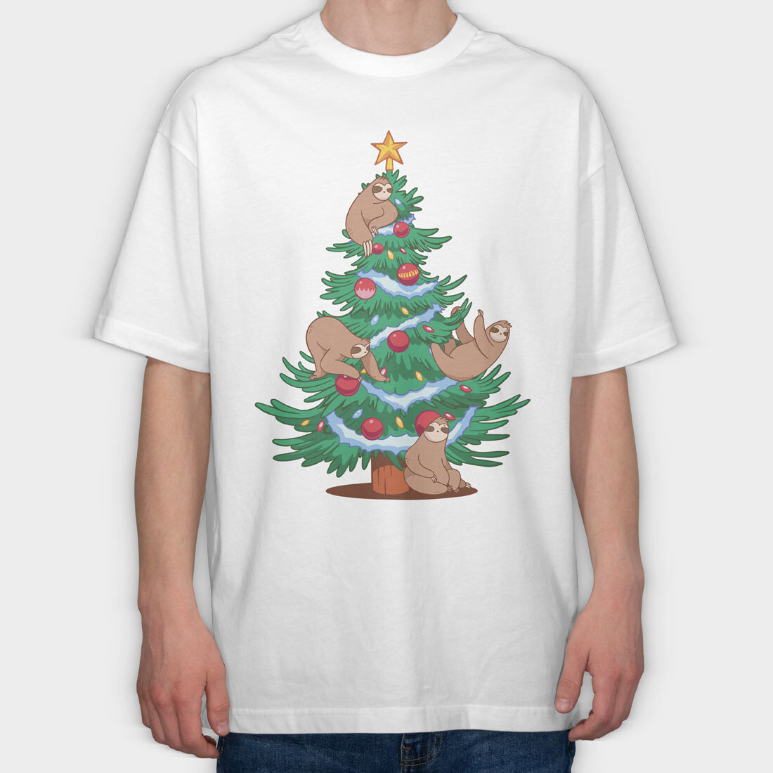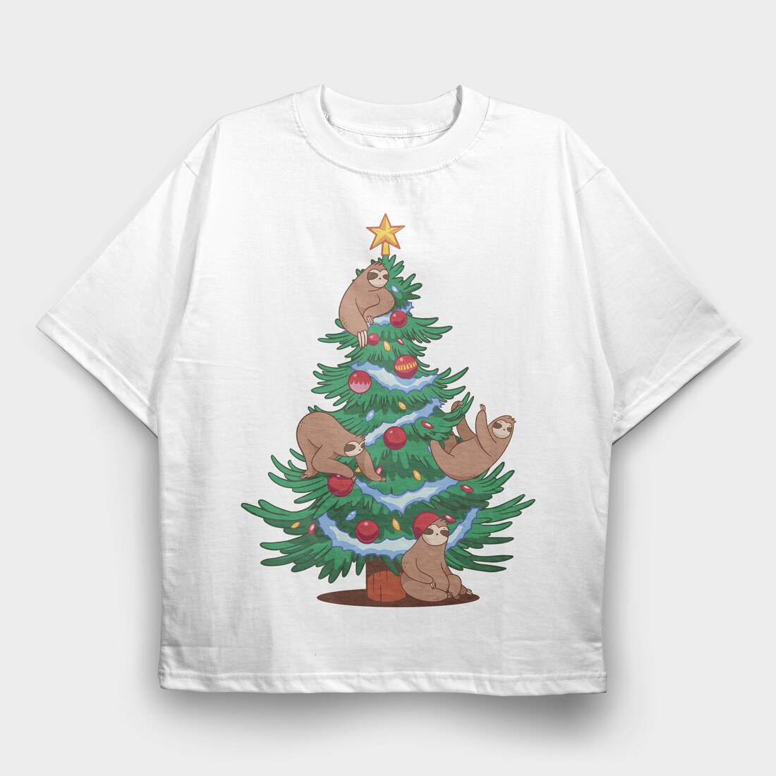 Sloth Christmas Tree, Tricou Oversize Barbati (Unisex)