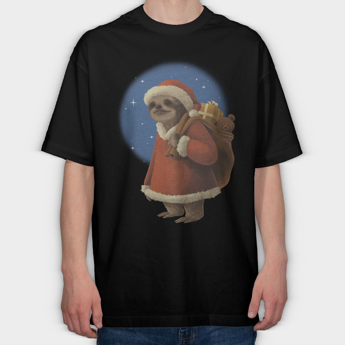 Sloth Santa Claus In Christmas, Tricou Oversize Barbati (Unisex)