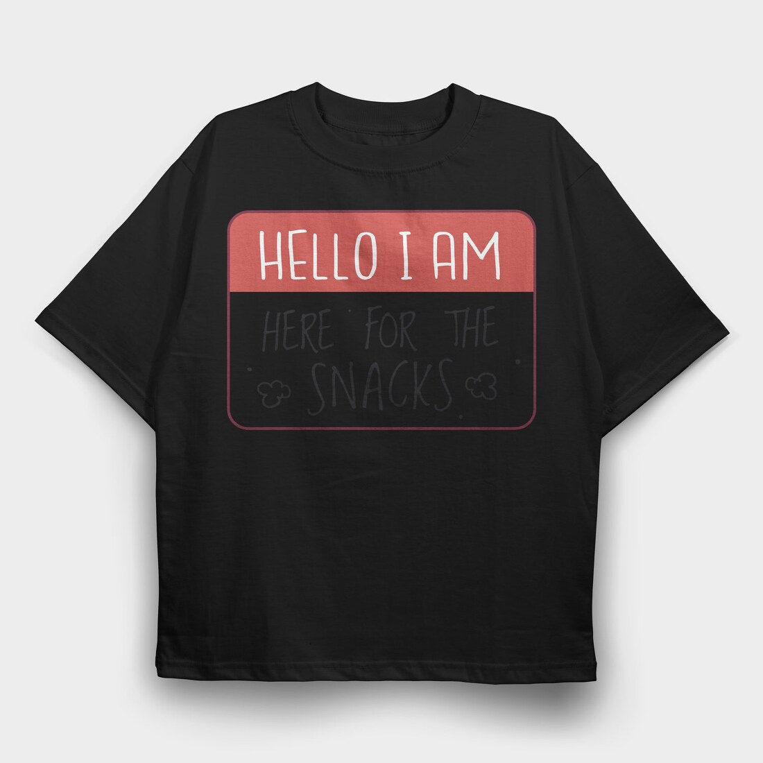 Snacks Lover Name Tag Hello I M Here For The Snacks, Tricou Oversize Barbati (Unisex)