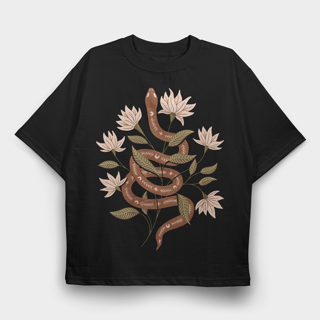 Snake and Flowers, Tricou Oversize Barbati (Unisex)
