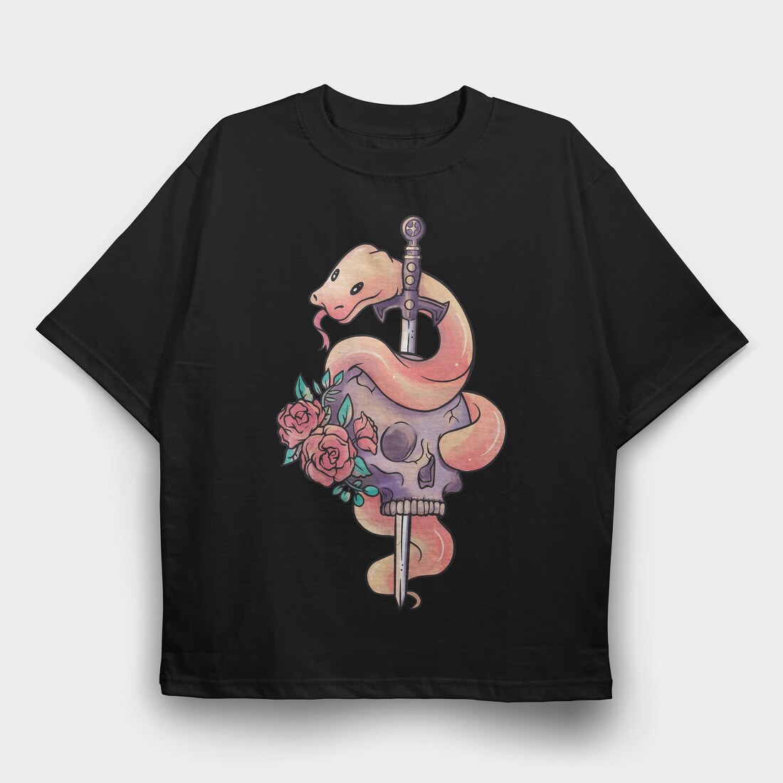 Snake With Sword And Skull Pastel Gothic, Tricou Oversize Barbati (Unisex)