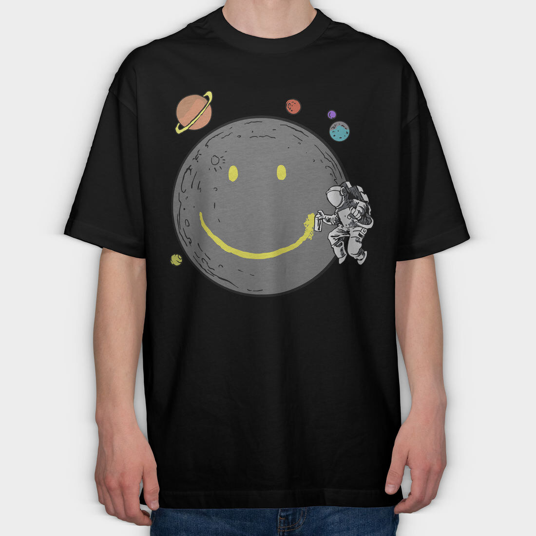 Space Smiley Astronaut, Tricou Oversize Barbati (Unisex)