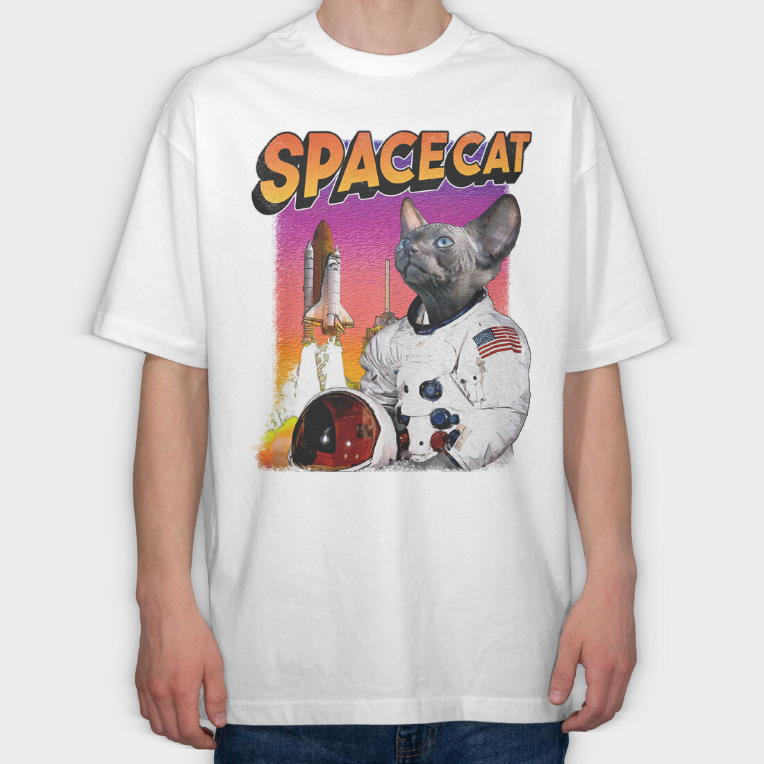 Space Sphynx Cat Astronaut, Tricou Oversize Barbati (Unisex)