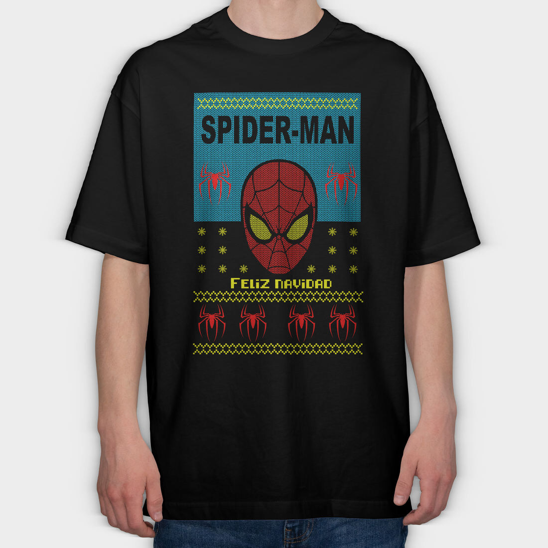 Spiderman Holiday Knit, Tricou Oversize Barbati (Unisex)