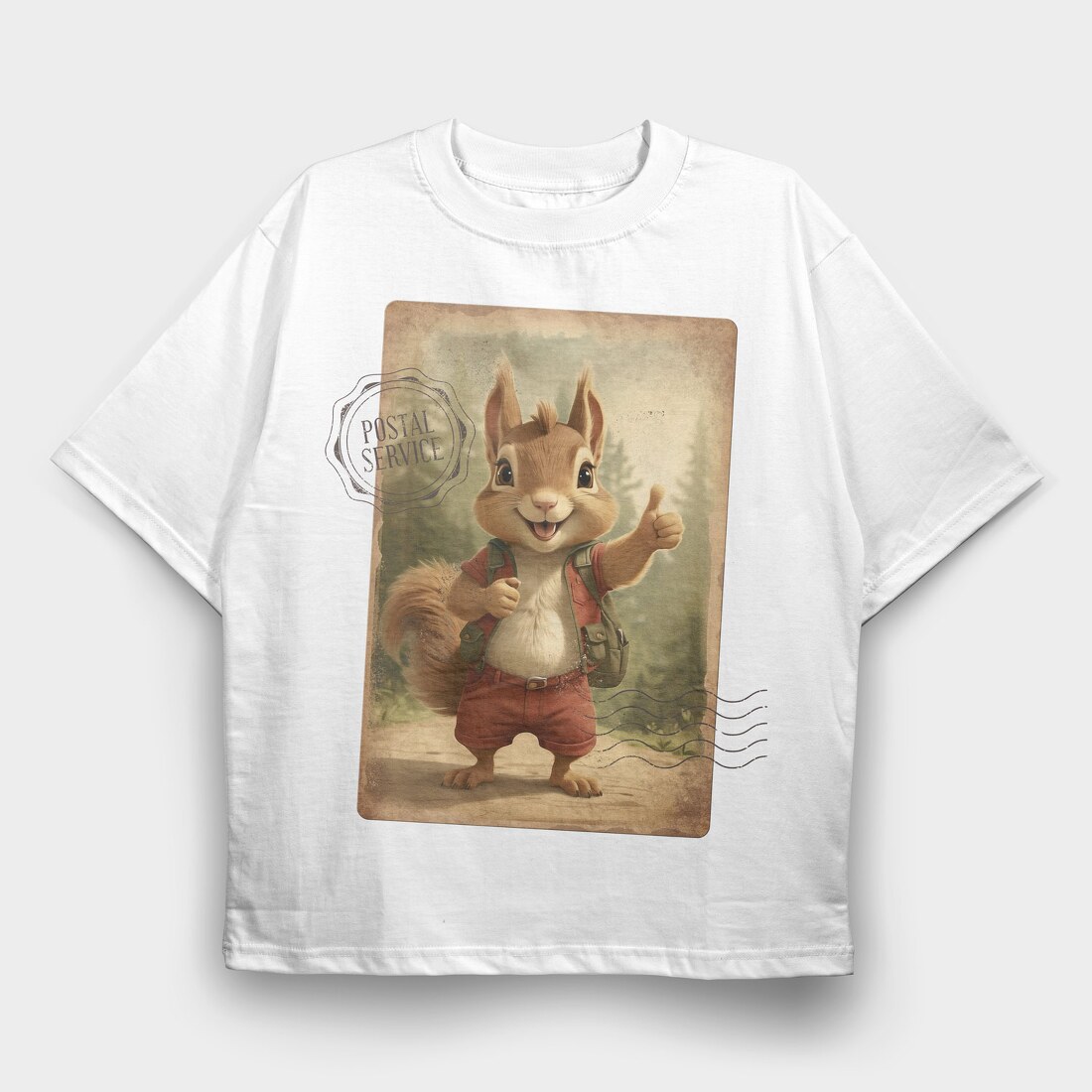 Squirrel in Nature Thumbs Up, Tricou Oversize Barbati (Unisex)